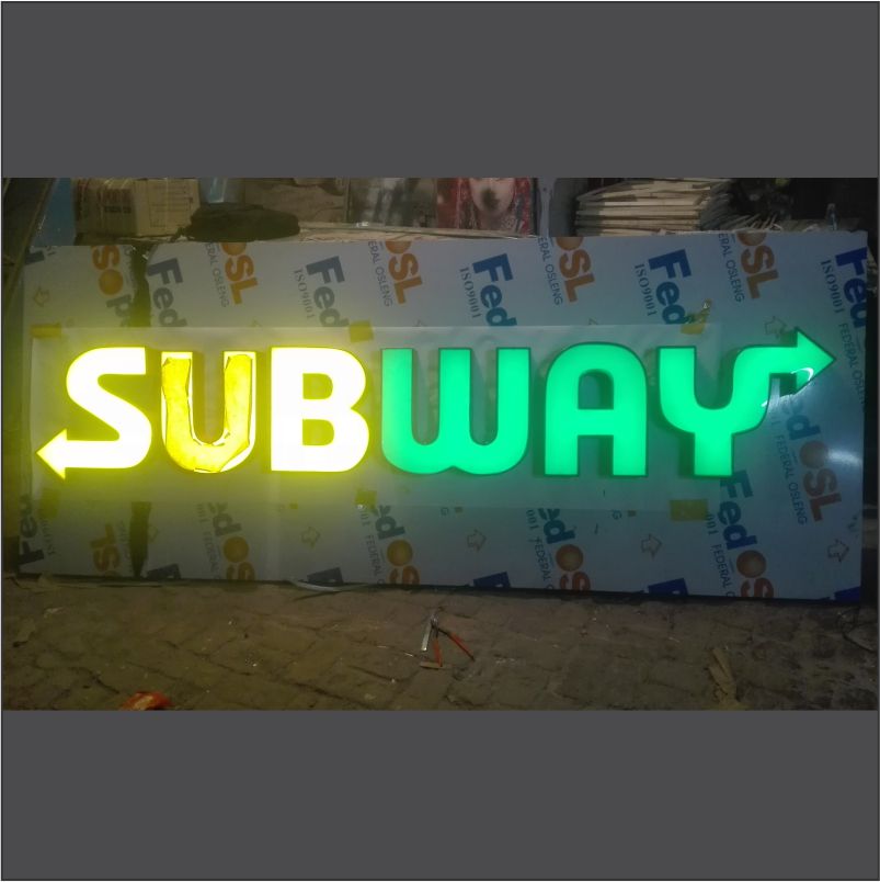 3d signboards have been the recent discovery. Being very famous nowadays, with its simple formation technique and less power consumption, they can last for very long and present with excellent illumination effect at night. The process starts with acrylic sheets laser cutting according to the design. Then letter sides are glued with the front acrylic with the help of a chemical. Further after, led lights are installed at the back of a 3D letter which after turning on gives the illumination effect.